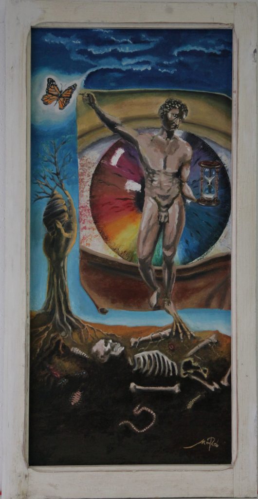 Antonio Monteiro Robalo (Tony MonRob) es un artista local y autodidacta, que busca en el arte, la danza y la poesía una vía de expresión personal y terapéutica, que conmueve al espectador de manera impactante, llevando siempre a una profunda reflexión. El autor, de origen caboverdiano, nacido en la pequeña isla de Sto. Tomé, ha expuesto sus obras en Zaragoza, Galicia, León y varios puntos de la comarca berciana en solitario y con colectivos. En sus pinturas refleja una trama de injusticia social, conspiración, simbología y mensajes reveladores propios de obras de ficción que dejan al espectador con la inquietante necesidad de indagar en el misterio. Domina diferentes estilos, mientras trata de descubrir el suyo propio y se deja llevar por la inspiración, sin dejar atrás sus claras raíces africanas.